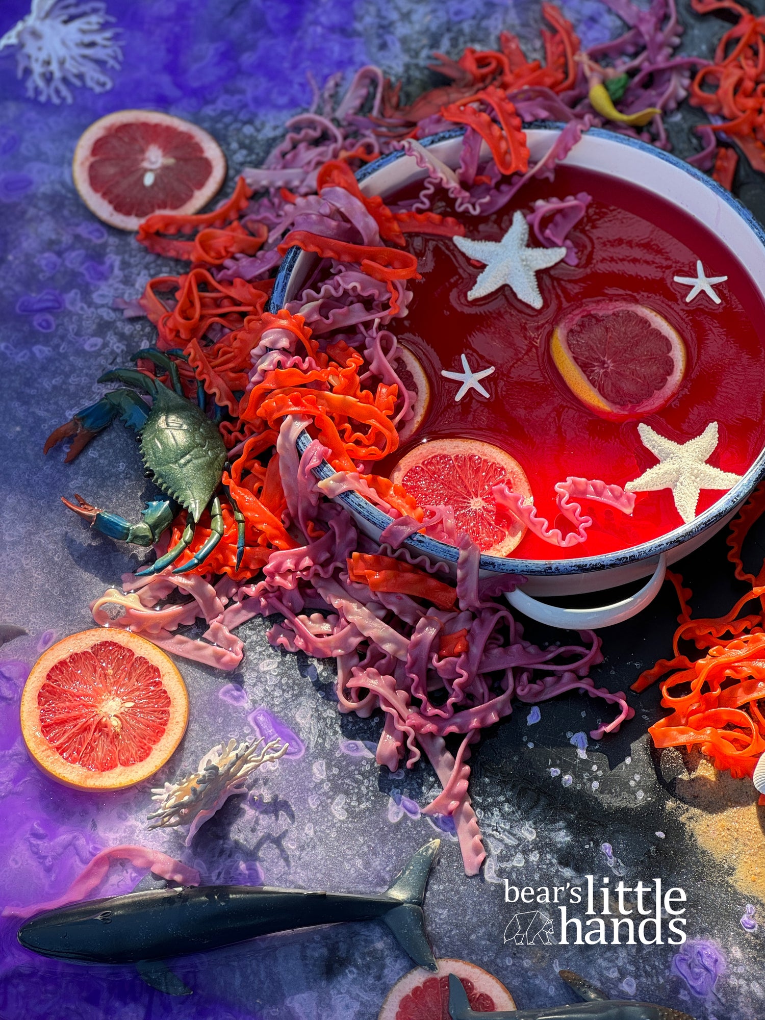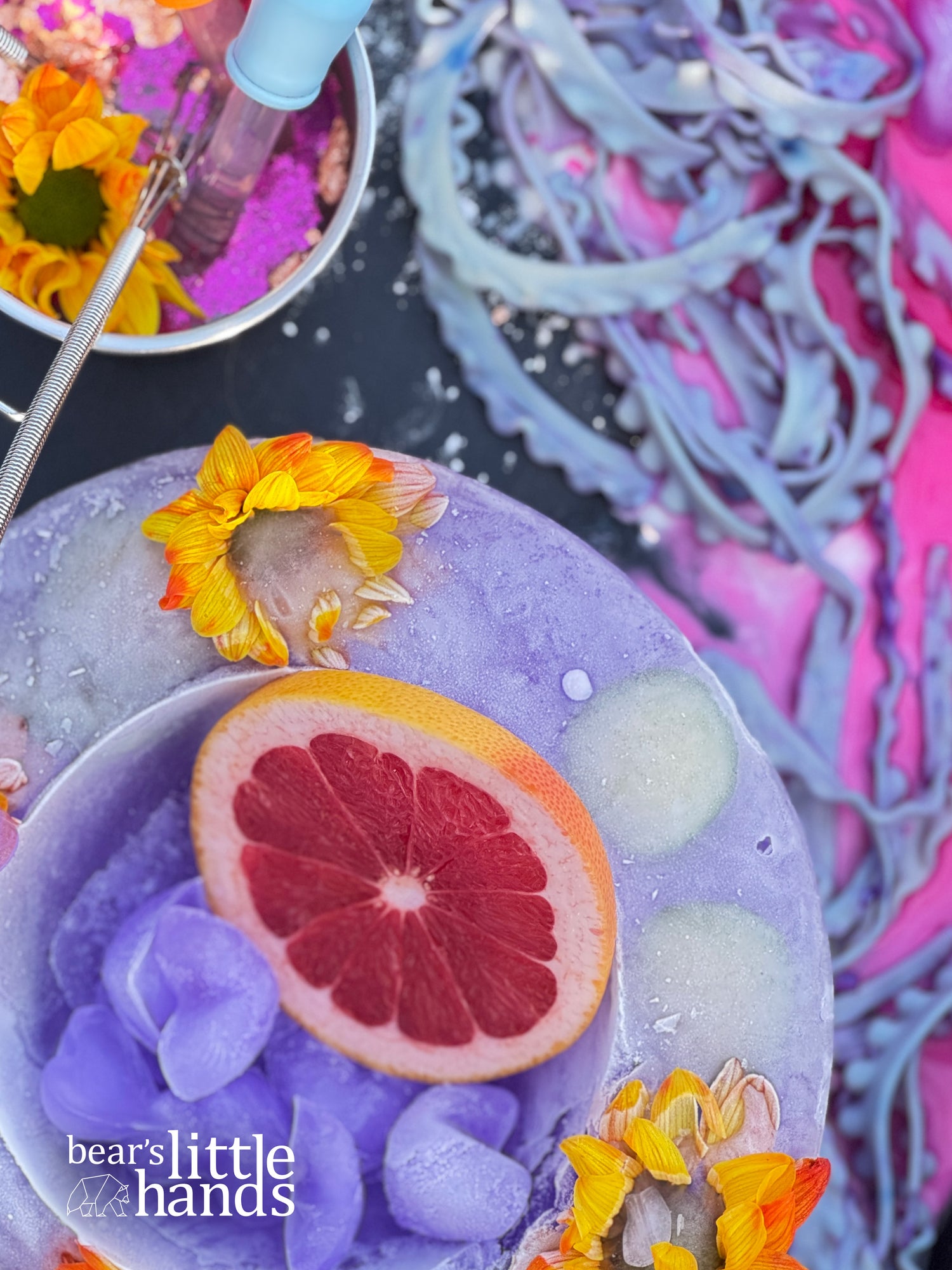 Includes everything needed to create a magical potion set up such as fizz that is activated by water, flowers, tapioca pearls, mixing bowls, whisks, props, etc.